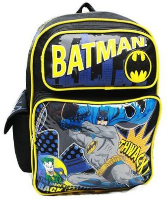 DC Comics Batman The Jokers Back 16 inch Backpack Back Pack. This high quality backpack measures about 16 by 5 by 12 inches and features two front compartments, a side mesh compartment, a side Velcro compartment, and a large main compartment. With Batman, and the Joker this bag will make a great gift for someone you know!