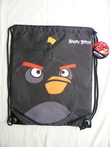 Cute Angry Birds School Drawstring Backpack, Gym PE, Swim Bag (Black) - gift for kids, childrens, girls, boys, son, daughter, niece, nephew, bags, backpack, travel, sports, birthday, halloween.