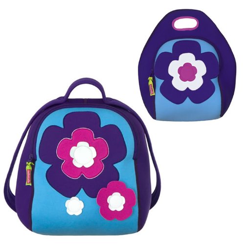 Dabbawalla "Flower Power" Backpack and Lunch Bag Set is soft and sized for comfort. Machine-washable (lay flat to dry) and stain-resistant. Well-designed features include cushioned handles, reinforced seams for added strength, wide zipper openings, and inside pockets for stashing gear. Very light and durable, your little one will love it! Backpack measures 13"x10"x7" and lunch bag measures 12"x11"x5".