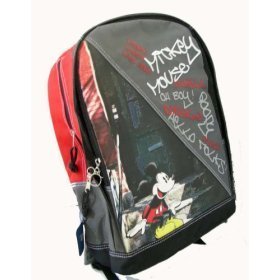 Cool Disney Mickey Mouse backpack designed with Disney style Mickey signature and Mickey Mouse picture icon. Full size school back pack, measures approx 12"W x 16"H x 5"D. Features:
