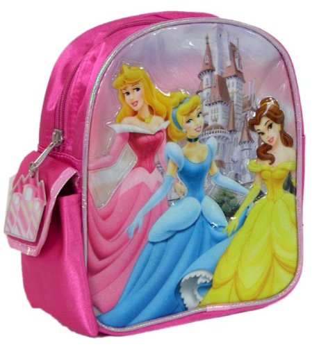 Disney Princess Backpack for toddlers beautifully illustrated with three. Princesses from Disney's loved classics Cinderella, Sleeping Beauty, and Beauty and the Beast. The back pack has one large compartment, top zipper and side pockets for on the go kids. Perfect for packing up and heading out!