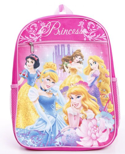 Disney Princess Girls Backpack For School Pink School Bag For Girls with 1 Large Main Compartment with Zipper, 1 Medium Front Compartment, 2 Side Mesh Water Bottle Pockets, Adjustable Straps