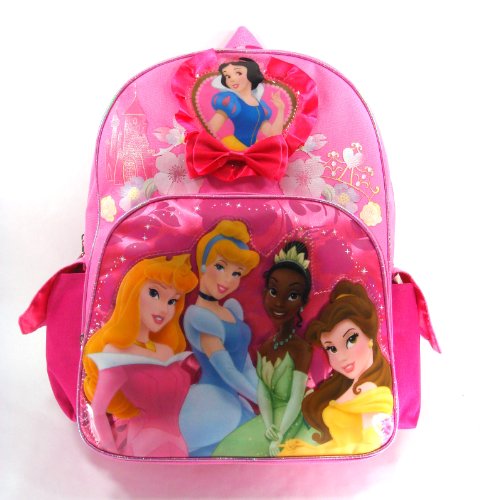Disney Princess - Happily Ever After - Large 16" Backpack - Featuring Tiana, Bell, Cinderella. Aurora, and Beauty
