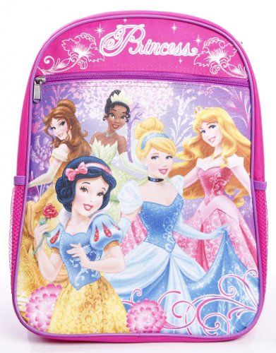Disney Princess Girls Backpack For School Pink-Purple School Bag For Girls with 1 Large Main Compartment with Zipper, 1 Medium Front Compartment, 2 Side Mesh Water Bottle Pockets, Adjustable Straps