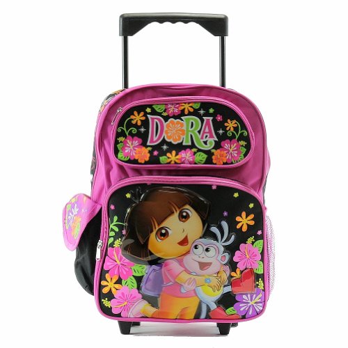 Dora The Explorer Girl's Pink/Black Rolling Backpack 16" School Bag BP-5221