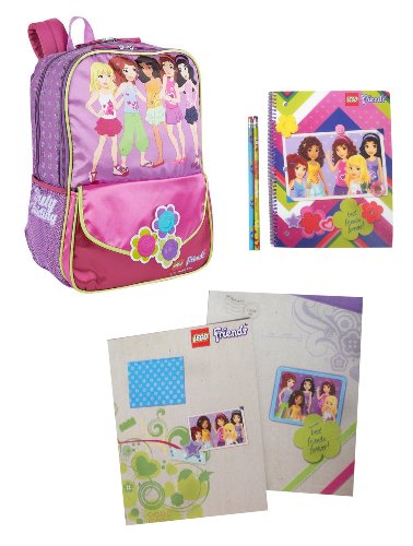 - Lego Friends Back to School Backpack Set includes: 17" Lego Friends Backpack, 2 Lego Friends Pocket Folders, 1 Lego Friends Spiral notebook, and 2 Lego Friends Pencils (colors may vary)!