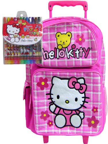 New Hello Kitty Rolling Backpack Pink & Twistable Crayons Pack