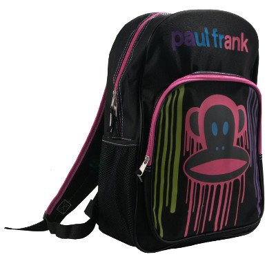 Drip paint Hot Pink and Blue Julius graphic centers on the large zip pocket surrounded by multicolor paint droplets. 2 Net mesh side pockets for drinks or extra storage. Mini organizer station for 2 writing utensils and 2 small storage spots found in front pocket.