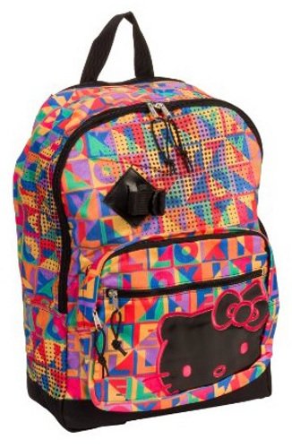 Hello Kitty Multi-Colored Junior Backpack Back Pack. This adorable backpack measures 12 by 5 by 16 inches and features a small front compartment, and a large main compartment with padded tablet sleeve. Perfect for school or travel, this bag makes a great gift!