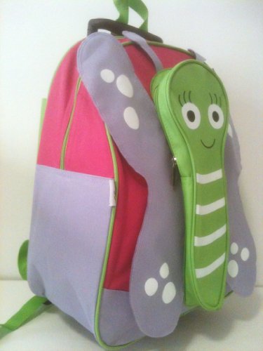 KIDS CAN WHEEL THIS BACKPACK AROUND WITH A RETRACTABLE HANDLE OR THEY CAN USE THE ADJUSTABLE SHOULDER STRAPS TO CARRY IT AS A BACKPACKPRACTICAL AND CONVENIENT.FEATURES :- DUAL ZIP MAJOR COMPARTMENT WHICH OFFERS PLENTY OF ROOM FOR BOOKS, CLOTHING OR TOYS.- ONE FRONT ZIP POCKET IN THE SHAPE OF CUTE BUTTERFLY WITH "REAL WINGS".(5" W X 13" H). VERY CUTE & BEAUTIFUL.- ADJUSTABLE PADDED SHOULDER STRAPS.- TOP LIFT HANDLE- MATERIAL : CANVAS