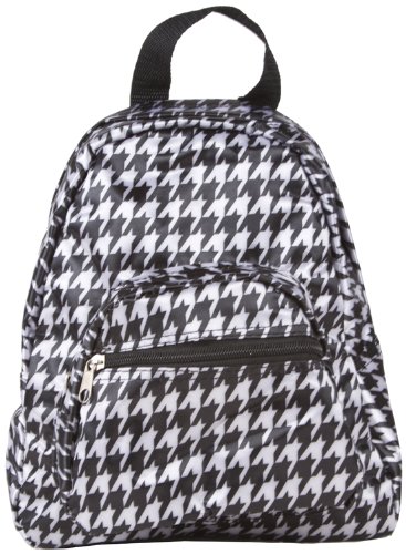 This durable microfiber mini backpack is just the thing to keep up with your active lifestyle. In a stylish black and white houndstooth print with black trim, this compact, versatile backpack is great to just throw over your shoulder and go! This petite pack is a cute size for a casual but fun on-the-go purse or perfect for younger kids. Adjustable shoulder straps make sure it fits every frame. Makes an ideal rugged daypack to hold water and snacks for an afternoon hiking excursion. This cute, lightweight bag is linen lined for easy cleaning and the zipper main enclosure keeps your belongings secure while accessible. Features two front zip pockets for easy access to car keys, cell phone or other smaller items.