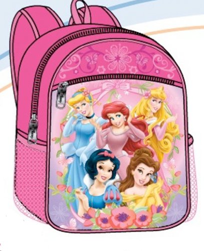 Princess Full Size Backpack is perfect for 3 yrs- 14yrs. Adjustable Straps are padded and back of the backpack is padded for your child's comfort. Has Zipper Main compartment, One larger &one smaller Zipper Pockets on the front. One mesh pocket with Water Bottle and one zipper pocket on each side of the bag.