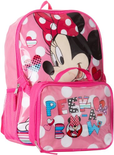 Disney Girls 2-6X Minnie Peek A Bow 16 Inch Backpack with Lunch Kit, Pink, One Size