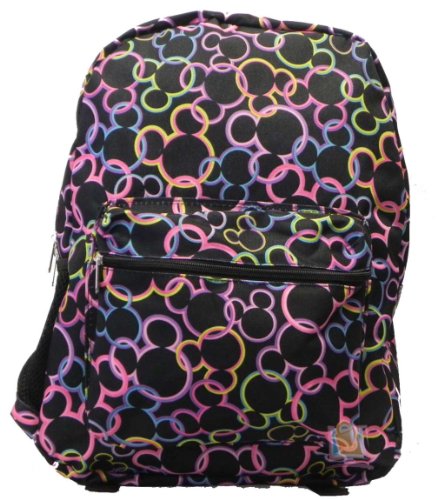 Disney Girls 7-16 Allover Multi Head Mickey Print Backpack, Black, One Size