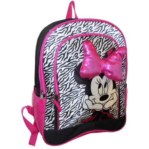 Disney Junior Minnie Mouse Full Size 16 inch School Backpack Zebra Hot Pink Bow