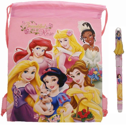 Disney Princess Light Pink Drawstring Bag " Rose " with 1 Pen