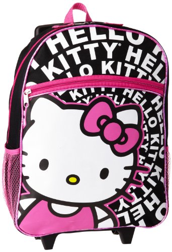 FAB Starpoint Girls 2-6X Hello Kitty 16 Inch Rolling Backpack, Black White Pink, One Size