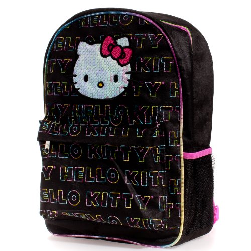 Hello Kitty 16" Backpack-Black & White Checkerboard with Hello Kitty Sequin Face.Product Dimensions(in inches)16.3 x 12.9 x 1.6Adjustable strapsContains side pockets for water bottles and other accessories.Contains small hang loop for locker hanging or closet hanging.