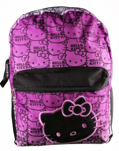 Hello Kitty Purple Ombre Junior Backpack Back Pack. This adorable backpack measures 12 by 5 by 16 inches and features a small front compartment, and a large main compartment with padded tablet sleeve. Perfect for school or travel, this bag makes a great gift!