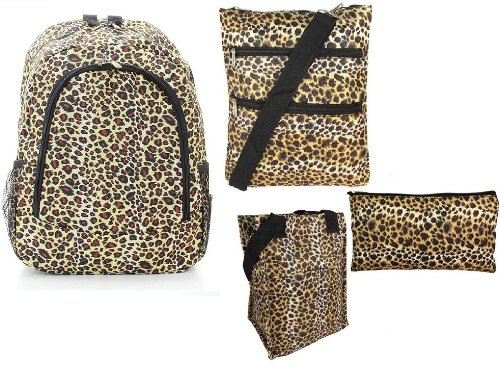 - Wow...what a set! Leopard print full size backpack, insulated lunch bag, hipster, and pencil pouch / case set.