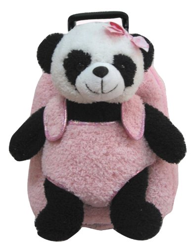 This interactive pink trolley backpack features a black and white panda. The adjustable handle locks at the right height. For playtime the penguin unstraps from the bag. The bag is removable from the frame.