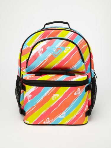 Roxy girl "bunny" allover printed backpack with logo heart screen and detachable cooler lunchbox with logo heart screened food and drink containers.