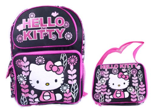 Sanrio Hello Kitty 16" Large School Backpack 10" Lunc Bag Set - Black