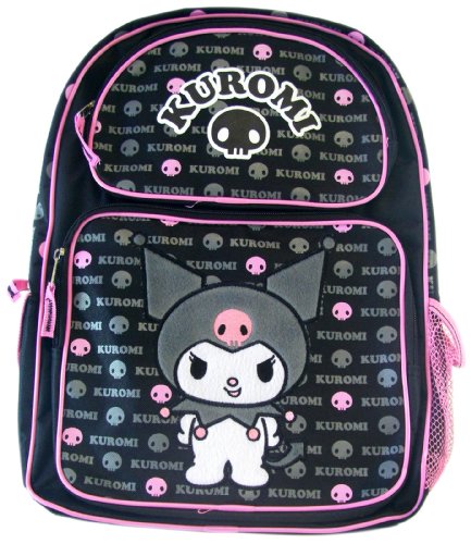 Sanrio Kuromi Black and Pink Large 16" Backpack Officially Licensed Hello Kitty Product, Great Gift Idea For Girls