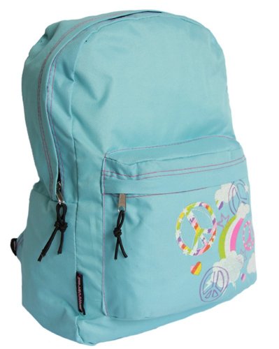 Trailmaker Girls' Backpack / Book bag - Blue with pink accents and peace signs