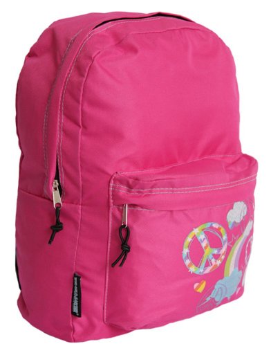 Trailmaker Girls' Backpack / Book bag - Pink with blue accents and peace signs