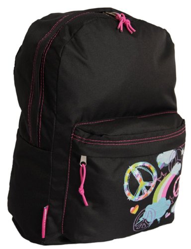 Trailmaker Girls' Backpack / Book bag - Black with pink accents and peace signs